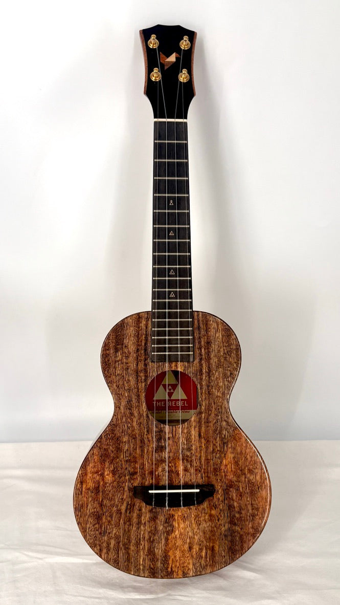 Der Name "Rebel" hat sich mittlerweile etabliert in der Ukulelenszene in Deutschland. Bereits die Opios, die die Rebel-Manufaktur für Koaloha baut, sind bekannt für ihren großartigen Klang und das sehr gute Preis-Leistungsverhältnis. Mit ihren eigenen Ukulelen geht Rebel klanglich und optisch einen etwas anderen Weg. Um es vorwegzunehmen: in der Preisklasse unter 1000€ sind sie (fast) nicht zu toppen.