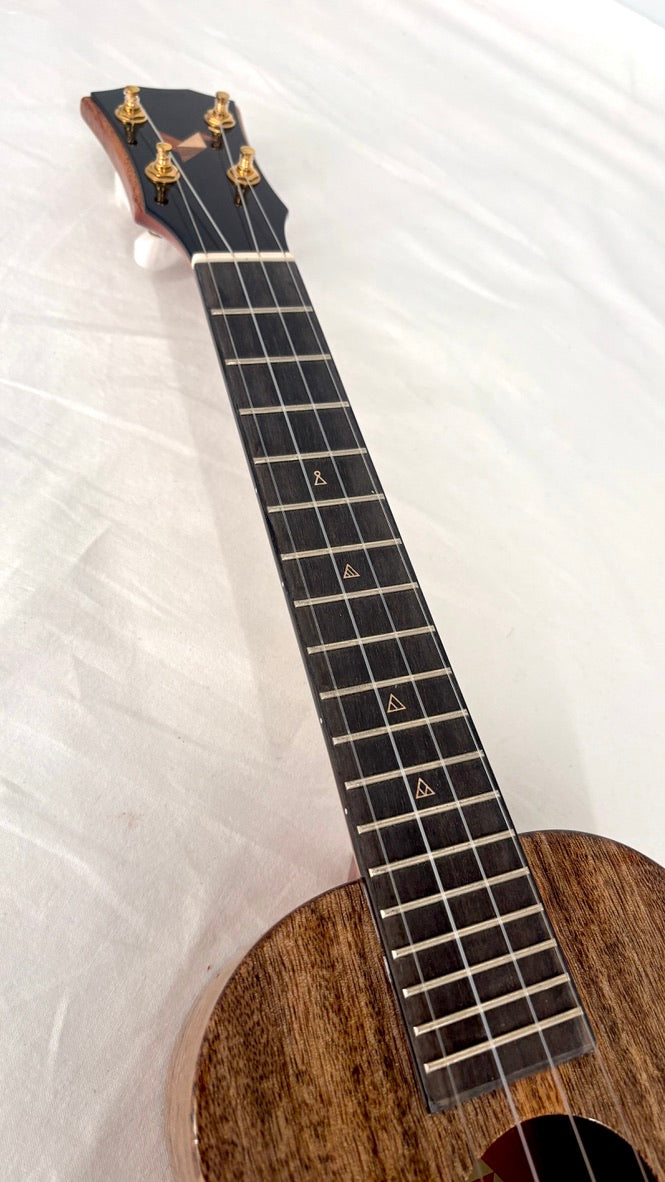 Die Ukulelen sind mit klaren Fluorcarbonsaiten bespannt, die Bespielbarkeit ist durch den niedrigen Saitenzug und die flache Saitenlage hervorragend, die Ukulele spielt sich (fast) von selbst.