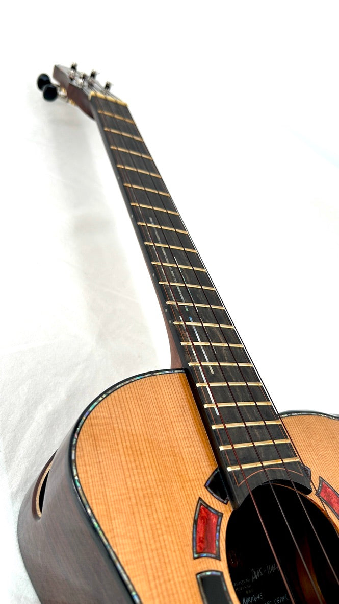 In den letzten Jahren hat er bereits die Marke "Hozen" für die Gitarren etabliert, die besondere Features haben und - das ist das Wichtigste - die er persönlich "hand-voiced", also die Decke und die Beleistung per Hand schleift, damit das Instrument optimal resoniert. Im Video unter dem Reiter "Hersteller" erklärt er diesen Prozess genauer (allerdings auf seine Gitarren bezogen:-)).