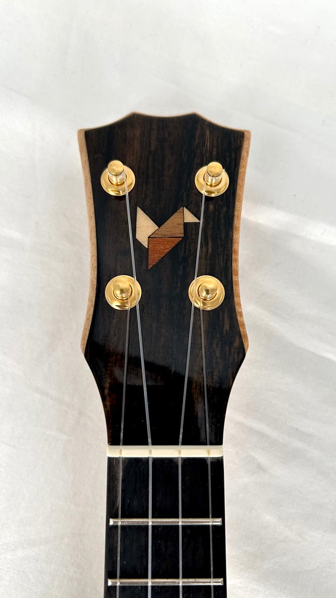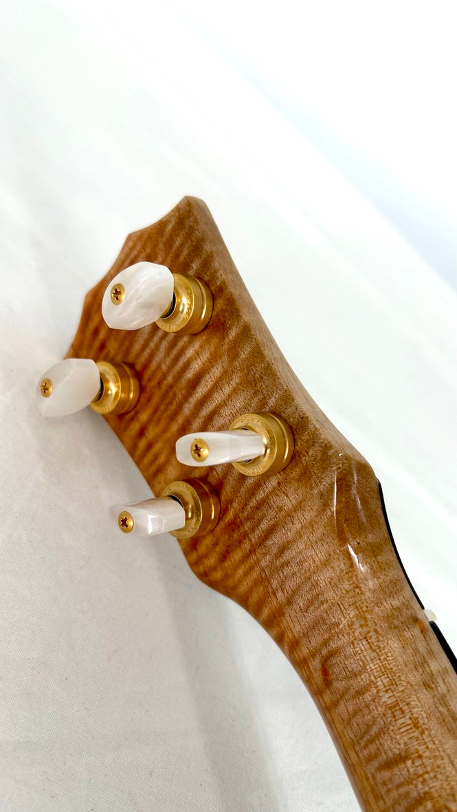 Packt man eine Rebel aus dem recht bunten, aber gut gepolsterten Gigbag aus, fällt einem zunächst die makellose Verarbeitung und das spektakuläre Mango auf. Die elegant gestaltete Kopfplatte mit dem stylischen Logo trägt vergoldete Gotoh UPT Tuner, für mich die besten Ukulelenmechaniken, die es gibt.