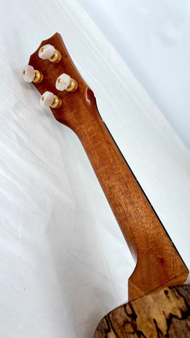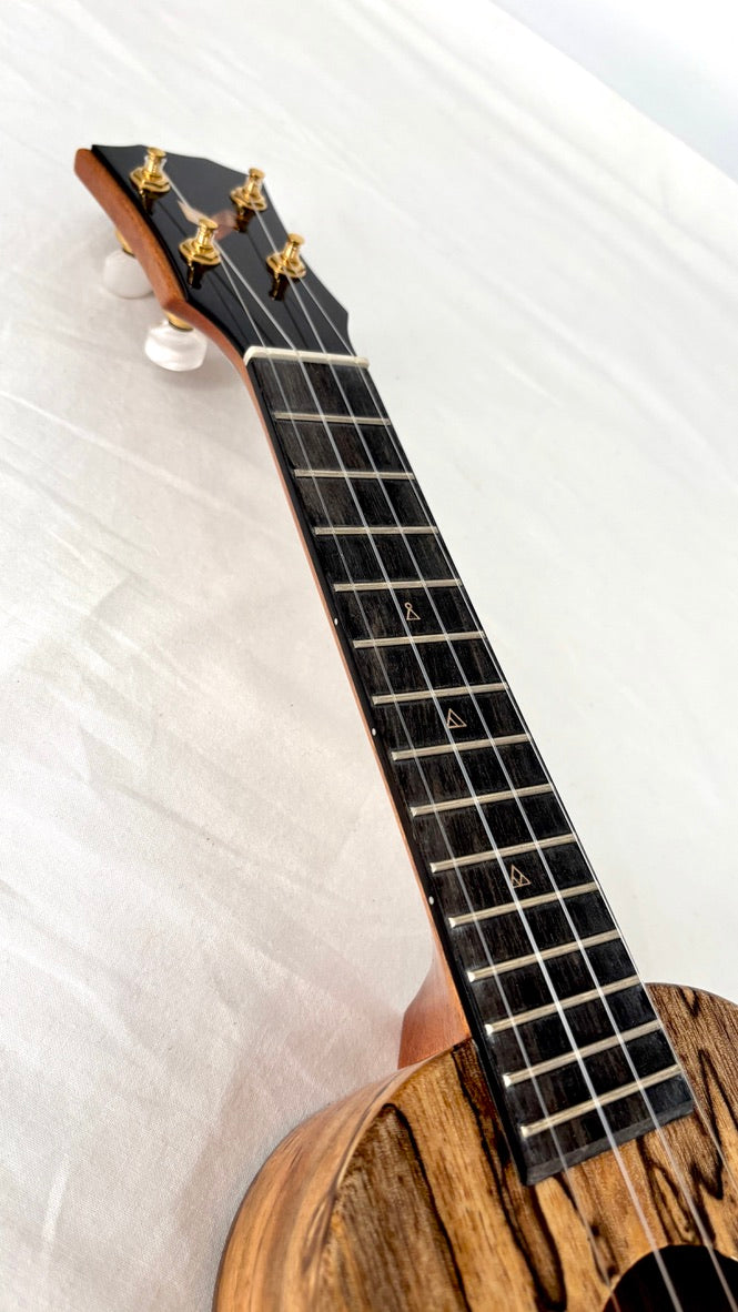 Die Ukulelen sind mit klaren Fluorcarbonsaiten bespannt, die Bespielbarkeit ist durch den niedrigen Saitenzug und die flache Saitenlage hervorragend, die Ukulele spielt sich (fast) von selbst.